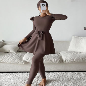 3pack Solid Drawstring Side Full Cover Burkini Swimsuit With Cap